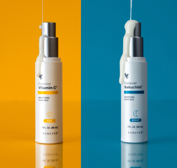 Αποκτήστε στοχευμένη περιποίηση της επιδερμίδας όλο το 24ωρο με ένα δίδυμο προϊόντων καθημερινής χρήσης που περιλαμβάνει το γαλάκτωμα λάμψης προσώπου Forever Vitamin C™ και το θρεπτικό γαλάκτωμα προσώπου Forever Bakuchiol