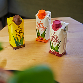 Γιατί να περιμένετε το καλοκαίρι για να απολαύσετε τη γεύση των ώριμων ροδάκινων; Τώρα μπορείτε να απολαύσετε αυτή τη γεύση ροδάκινου ανά πάσα στιγμή με το Forever Aloe Peaches, ένα φρέσκο χυμό που ενισχύει το 84,3% αγνό τζελ αλόης με φυσικό πολτό ροδάκινων. Όπως όλοι χυμοί αλόης μας και αυτή η αναζωογονητική και φρουτώδης πρόταση, είναι ένα εξαιρετικό πεπτικό βοήθημα που έχει υψηλή περιεκτικότητα σε βιταμίνη C για να υποστηρίξει τη λειτουργία του ανοσοποιητικού συστήματος και την υγεία του δέρματος.